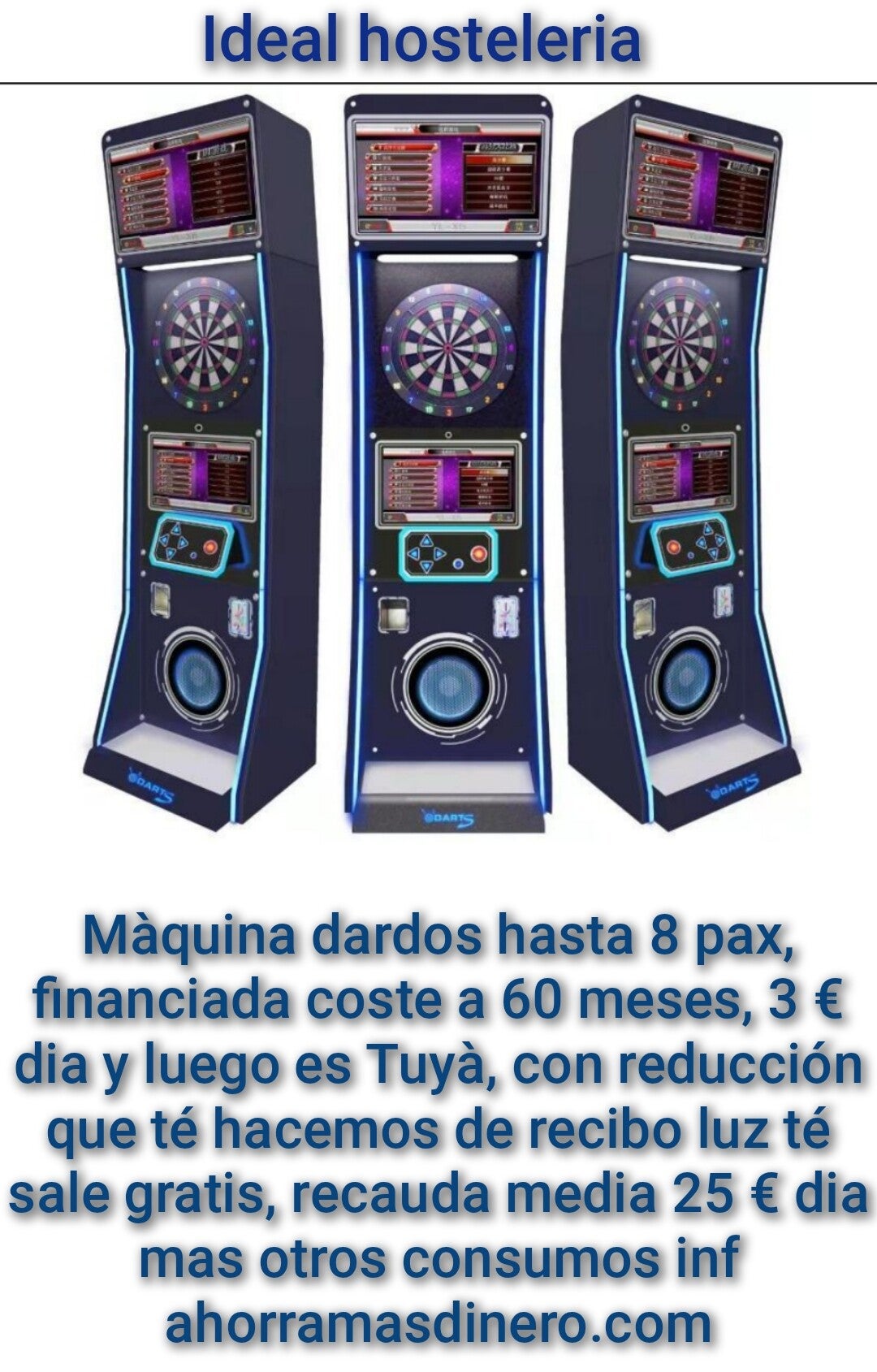 Comienza a disfrutar con una máquina de dardos para 8 personas, ¡sin coste alguno! Ideal para hostelería, pubs, discotecas, hoteles y chiringuitos. Ofrecemos soluciones para maximizar el entretenimiento y consumo en tu local. Únete a Ahorramásdinero.com y haz crecer tu negocio.